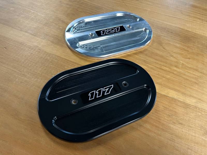 • CNC machined billet oval cover; available in Black, Silver (raw billet) or Chrome finish