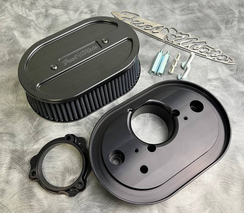 The BMF Oval air cleaner is a complete air cleaner assembly ready to make big power. Features our super high flowing dry element, backing plate with integrated velocity stack, CNC machined billet cover, and all necessary hardware. Add optional engine size emblem for a custom look!